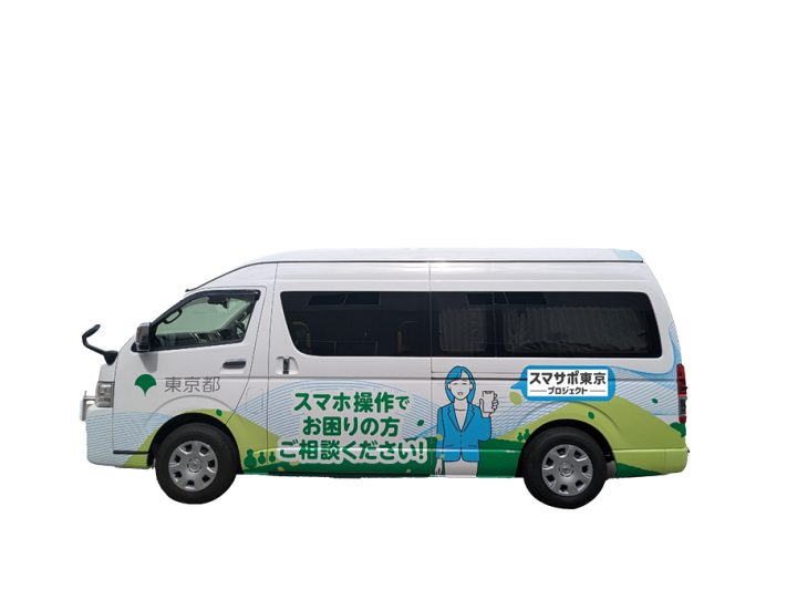 島しょおよび西多摩地域にお住まいの高齢者に、モニター等必要な機材を備えた車両でスマホ教室・相談会をお届け。