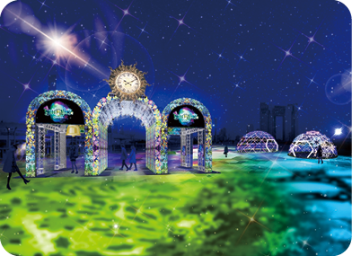 「不思議な光る森」をテーマに、シンボルプロムナード公園をライトアップ。臨海副都心の施設をイルミネーションでつなぐ。土曜日は花火も。