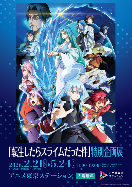 異世界転生ブームの火付け役となった作品の一つ。スライムとして生まれ変わった主人公が、仲間たちとともに築き上げる壮大な物語は多くのファンを魅了。本展では、名場面のパネルやセリフなどを通して、その世界観とキャラクターの魅力を余すことなく紹介します。