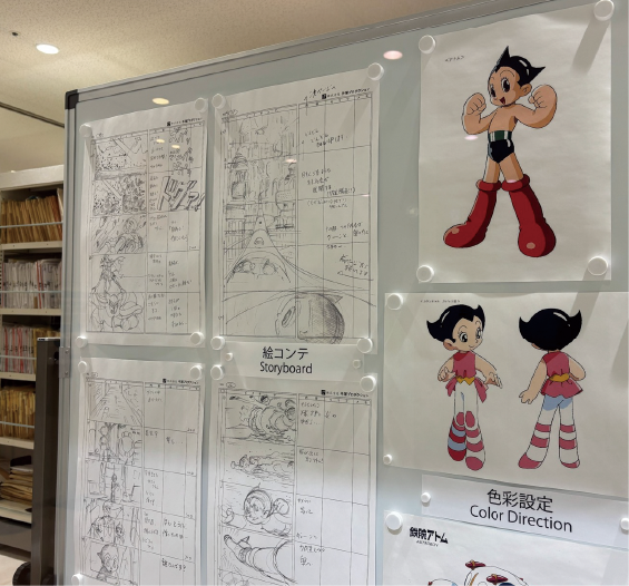 絵コンテやセル画、フィルムなど約5万点の資料を保管する国内最大級のアーカイブ。実際に使用された企画書や絵コンテなど貴重な資料をガラス越しに見ることができます。