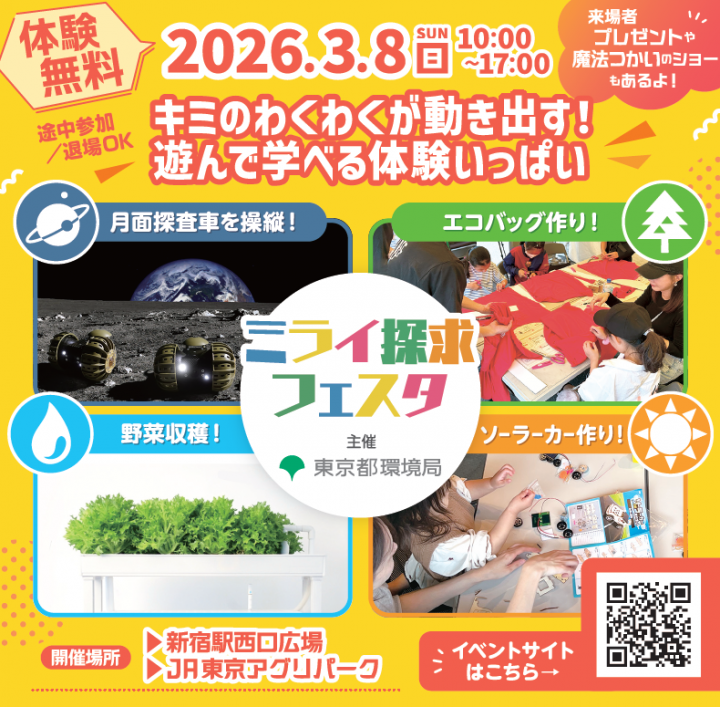 トップページ > 都政情報 > 広報 >WEB広報東京都 > バックナンバー > 2026年 > 広報東京都2026年3月号 > 小学生へのおすすめイベント「ミライ探求フェスタ」