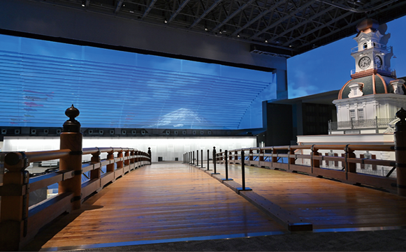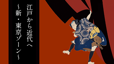 浮世絵風の江戸の空と現在の空が映し出され、季節や時間帯によっては、美しい花火も打ち上がります。