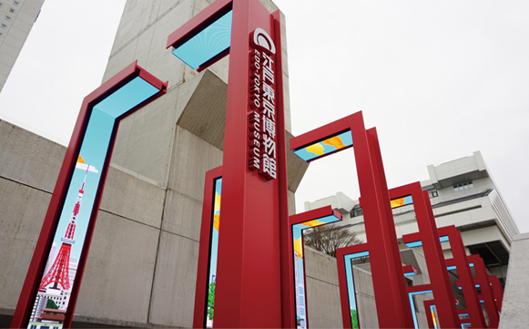 まず目を惹くのが、建築家・重松象平氏が監修した「鳥居」を模した工作物。その内側には、現代から江戸へと時代をさかのぼる映像が流れ、ワクワク感を加速させます。