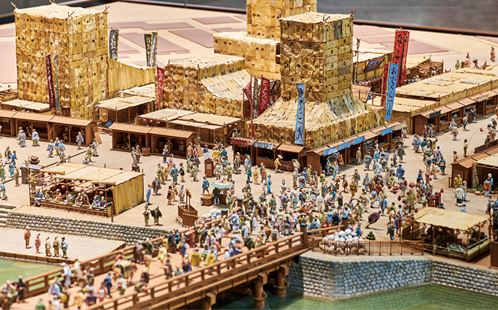 当時、世界一の人口密度とも言われた江戸のにぎわいの様子が細部まで再現された縮尺模型。一人ひとりの表情やしぐさが面白く、時間が経つのを忘れます。