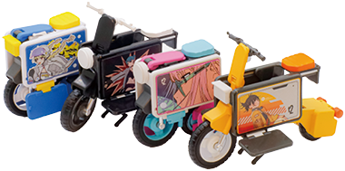 変形するおもちゃから着想を得た折りたたみ電動バイクなどを紹介。おもちゃを用いたワークショップで、ものづくりの楽しさを学ぼう。