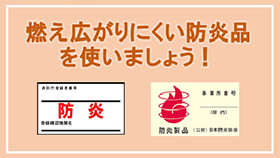 カーテンなどは燃え広がりにくい防炎品を使いましょう!
